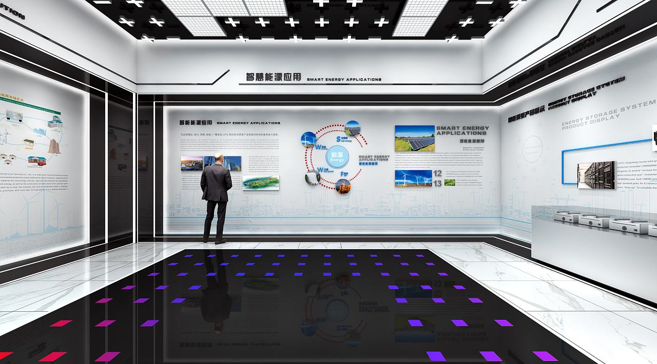 展厅由很多因素组成,包括布局、灯光、色彩、图标、展品、展览工具等。一个好的数字化新能源展厅设计,就是把这些因素构造成为一个有机的整体,实现统一。在展厅设计中合理、规范地使用企业标志是非常必要的,将很好地体现企业特色。展厅的主色调可以结合企业标准色的应用或在标准色体系的范围内进行合理的延伸,那么整个展厅的风格将与企业的整体风格保持一致,并可以在展厅内得到进一步的提升和优化。通过虚实结合,动静展示,互动交互等设计,丰富和创新产品的展示形式,打造专属于企业自身文化风格的展厅和展示形式。