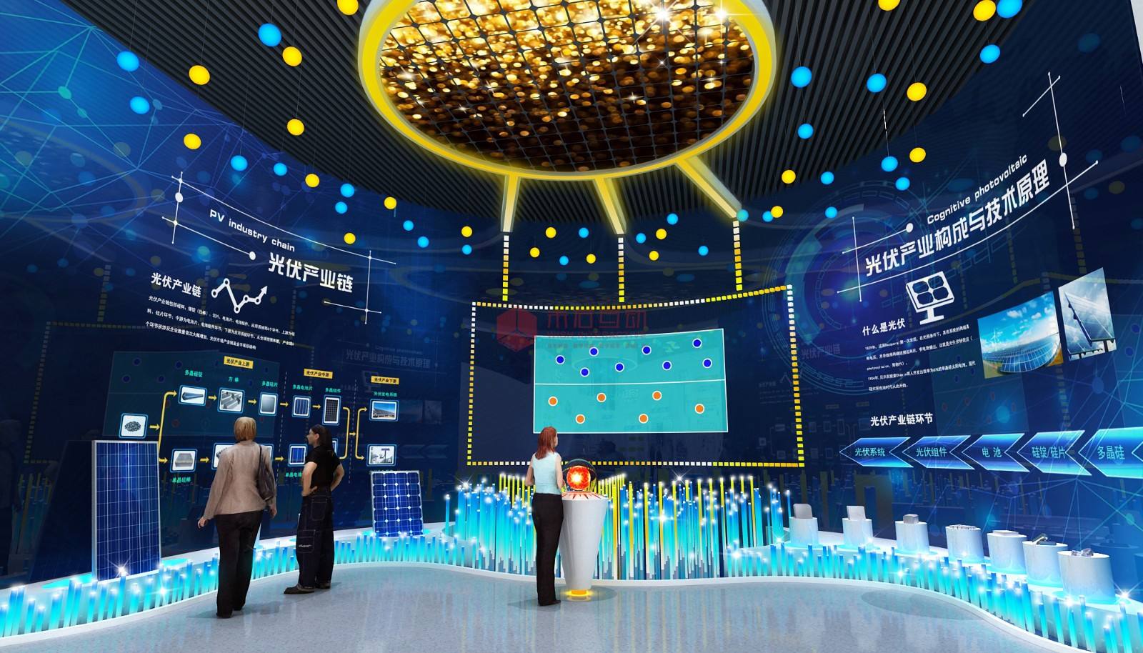既然是科技馆,我们就有必要在科技上创新,增加创意的科技元素。如何让科技馆看起来富有科技感高端炫酷,重要的是升级展示手法。比如加进高科技的数字多媒体展项。适合科技馆的数字多媒体展项有很多,像折幕、环幕、球幕、、弧幕、沉浸式投影、全息投影、幻影成像、地面互动、墙面互动、桌面互动等这些数字展项,都能用在科技馆改造中。